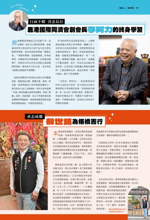 鹿港國際同濟會創會長 李阿力 的終身學習